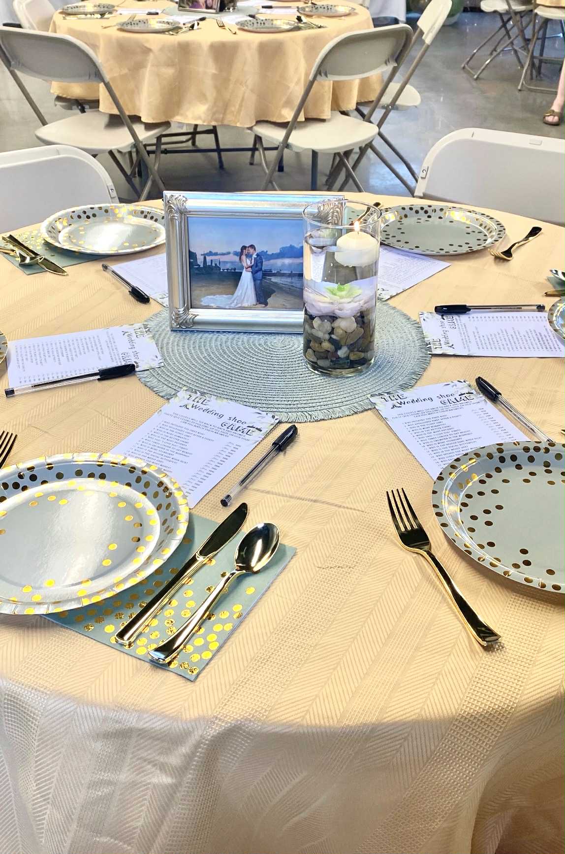 Includes Use of:*Tables + Chairs for 50 guests*Table Coverings *His and Hers bathrooms*Fridge and Prep Kitchen*TV + WIFI*Outside Patio (seating for 20 + ample gathering space) *Gas Fire Pits*Fully Shaded Patio Tents*Gas Grill*Outdoor/Indoor Bluetooth Speaker System*Outdoor Ice/Drink Chest- Large*Outdoor Putting Green